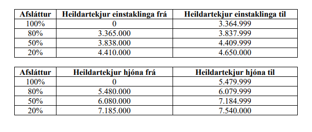 Tekjuviðmiðið, sem er hið sama 2018 og 2017, er þannig: