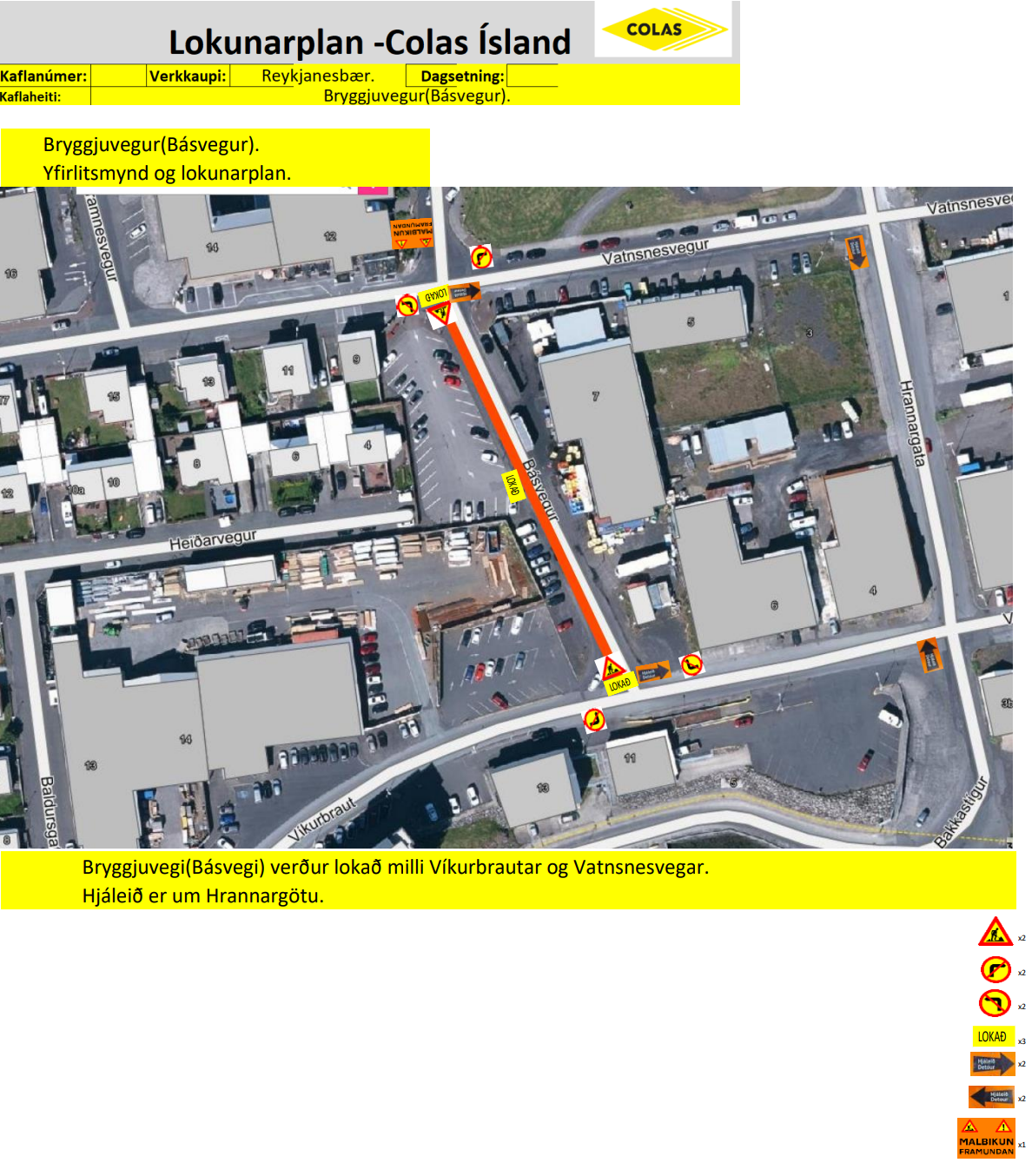 Colas stefnir að því að malbika Bryggjuveg þriðjudaginn 28. Maí.