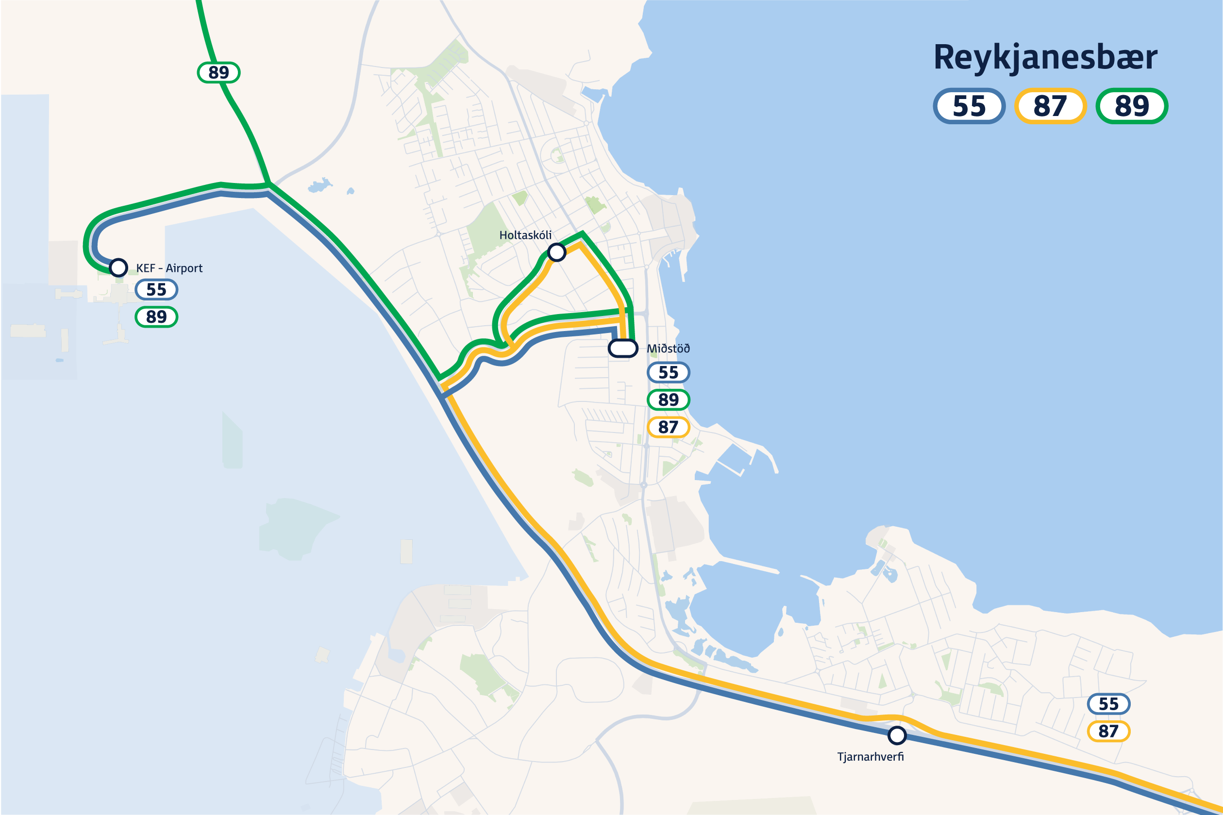 - Leið 55 verður skilvirkari tenging milli Reykjanesbæjar og höfuðborgarsvæðisins, með betra samspili við tímatöflur innanbæjar.