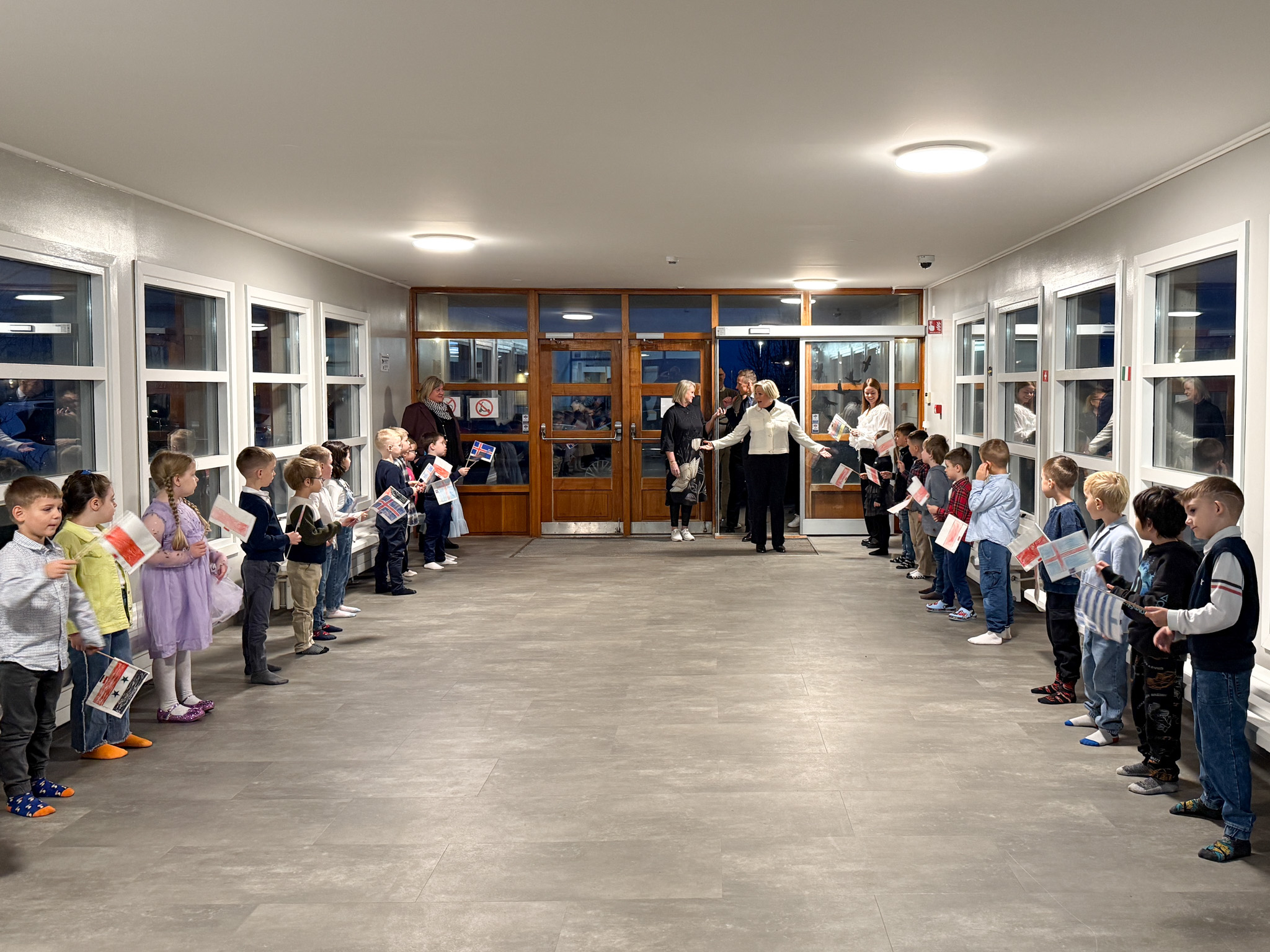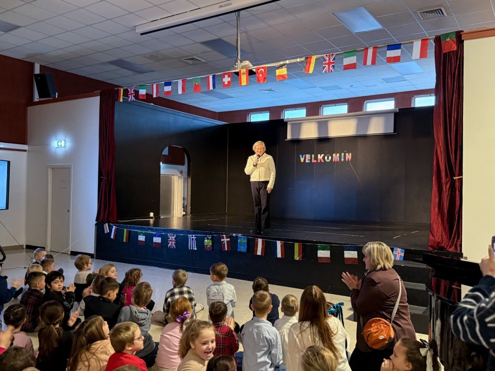 Í lok heimsóknarinnar komu nemendur saman á sal, sungu og buðu forsetann velkomin á ýmsum tungumálum. Halla flutti einnig nokkur orð til nemenda og starfsfólks og þakkaði fyrir eftirminnilega heimsókn.