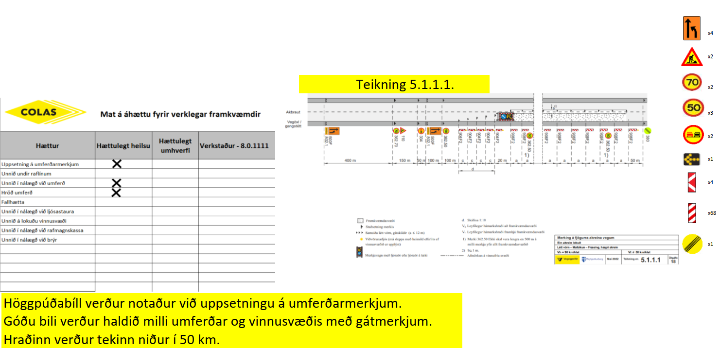Vegfarendur eru beðnir um að virða merkingar og hraðatakmarkanir og sýna aðgát við vinnusvæðin. Vinnusvæðin eru þröng og menn og tæki eru við vinnu mjög nálægt akstursbrautum.