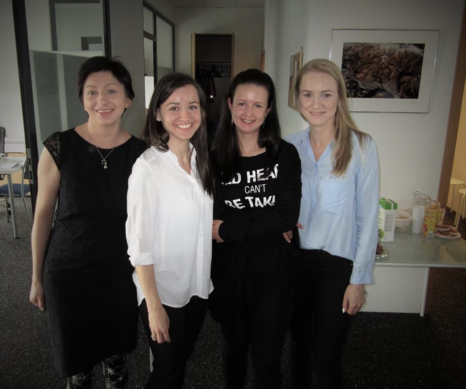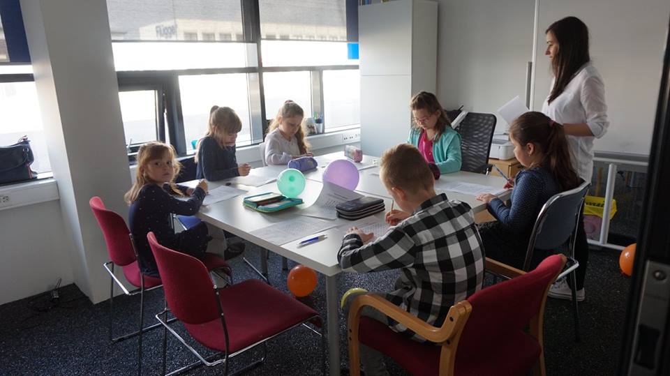Við skólaslit fá nemendur verðlaun fyrir námsárangur, ástundun og skólasókn. Aðalkennari Krakka Akademíunnar er Agata Beben og skólastjóri er Daría Luczków. Hér eru þær ásamt Katarzynu Omelianiuk og Justynu Ruszel starfsmönnum við skólann.