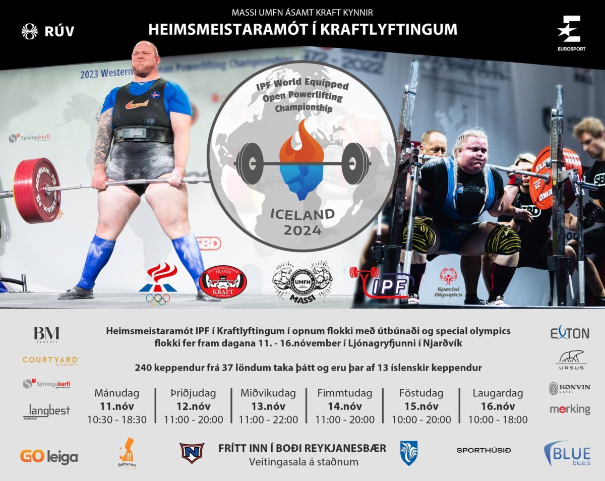 Heimsmeistaramótið í kraftlyftingum fer fram í Ljónagryfjunni í Njarðvík þessa vikuna, dagana 11.–16. nóvember 2024. Mótið, sem haldið er af Massa, lyftingardeild Njarðvíkur, í samstarfi við Kraftlyftingasamband Íslands, er í fyrsta sinn haldið á Íslandi. Viðburðurinn er jafnframt úrtökumót fyrir World Games 2025 sem fer fram í Kína og gefur íslenskum keppendum tækifæri til að taka þátt í kraftlyftingum á heimsmælikvarða á heimavelli.