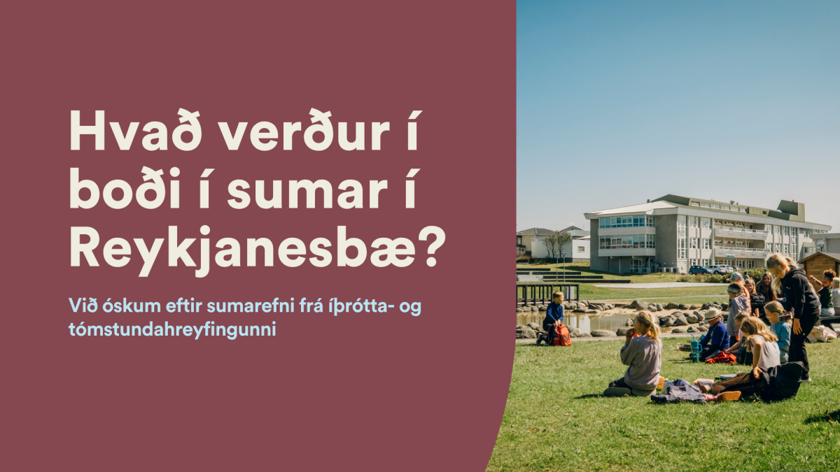Ef félagar eða klúbbar áforma að bjóða börnum, ungmennum og eða öðrum íbúum í Reykjanesbæ upp á tómstunda- og /eða leikjanámskeið eða aðra afþreyingu í sumar, biðjum við um að upplýsingar verði sendar til íþrótta- og tómstundafulltrúa á netfangið: sumar@reykjanesbaer.is fyrir 22.apríl nk.
