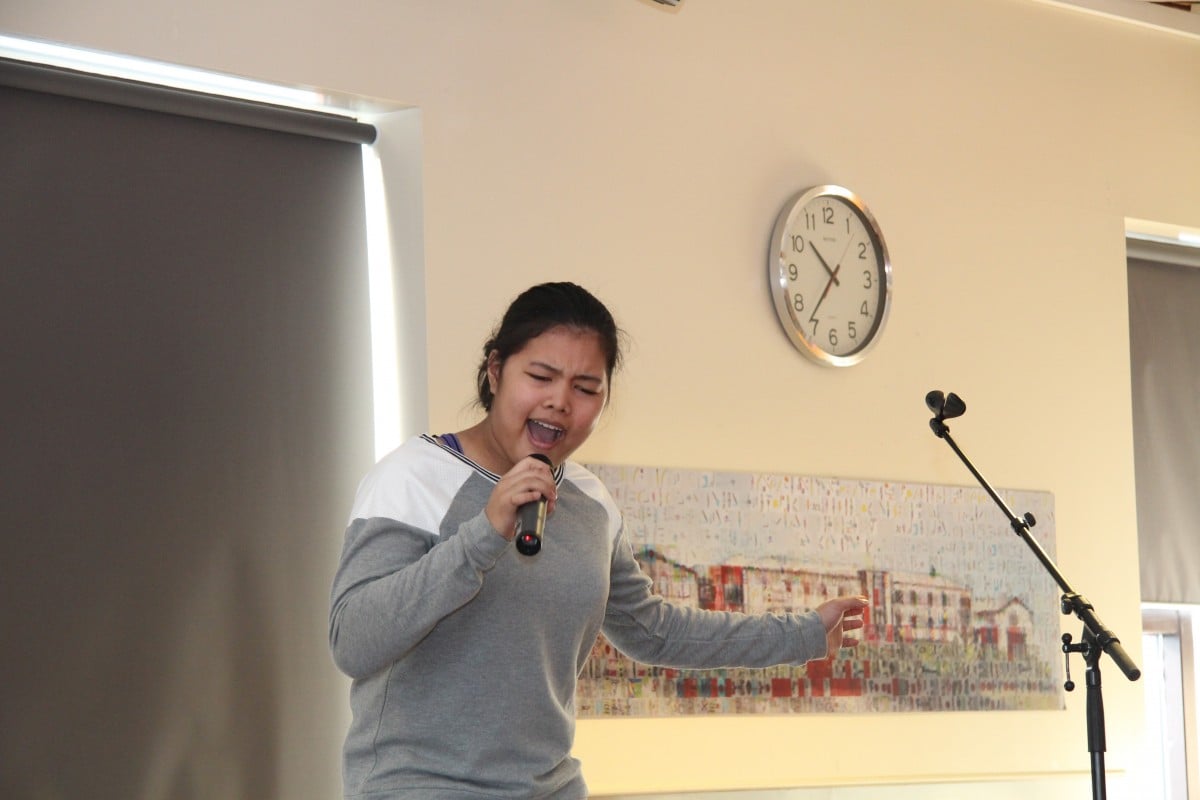 Jóhanna Ruth sigurvegari í Ísland Got Talent söng sigurlagið úr keppninni fyrir skólasystkini sín, kennara og starfsfólk í Myllubakkaskóla á sal skólans í morgun, að viðstöddum bæjarstjóra og sviðsstjóra fræðslusviðs Reykjanesbæjar.