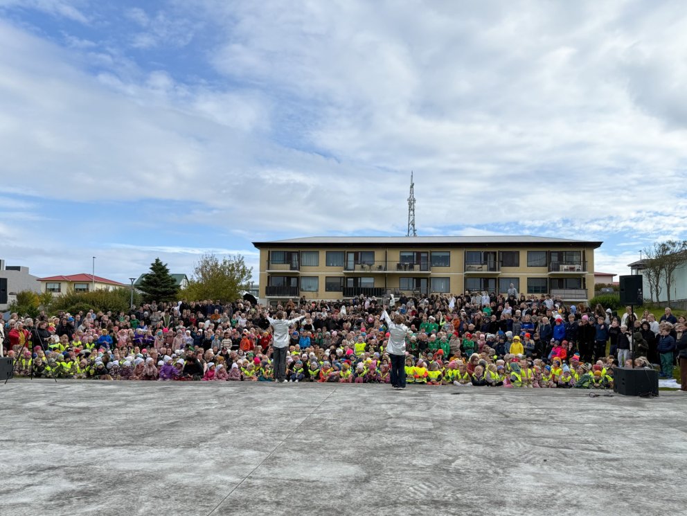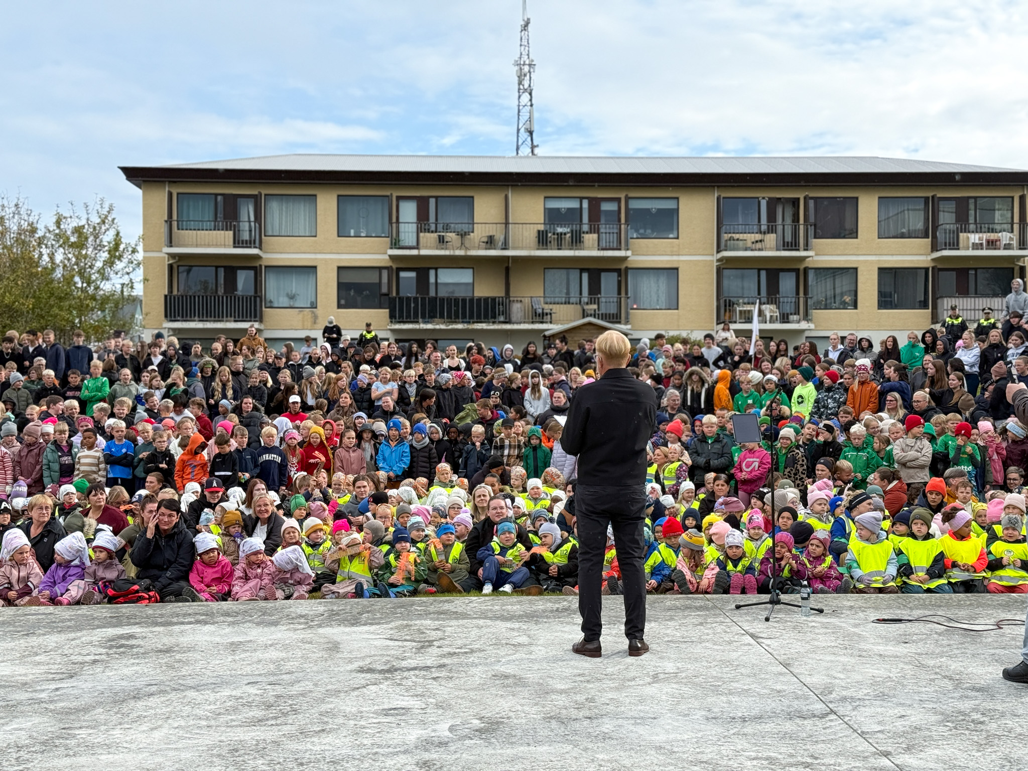 Ljósanótt, menningar- og fjölskylduhátíð Reykjanesbæjar, var sett í dag í Skrúðgarðinum í Keflavík. Börn úr leik- og grunnskólum bæjarins tóku þátt í athöfninni og mátti skynja eftirvæntingu í loftinu þegar fulltrúar Ungmennaráðs drógu risastóran, marglitan Ljósanæturfána að húni á eina hæstu flaggstöng landsins.