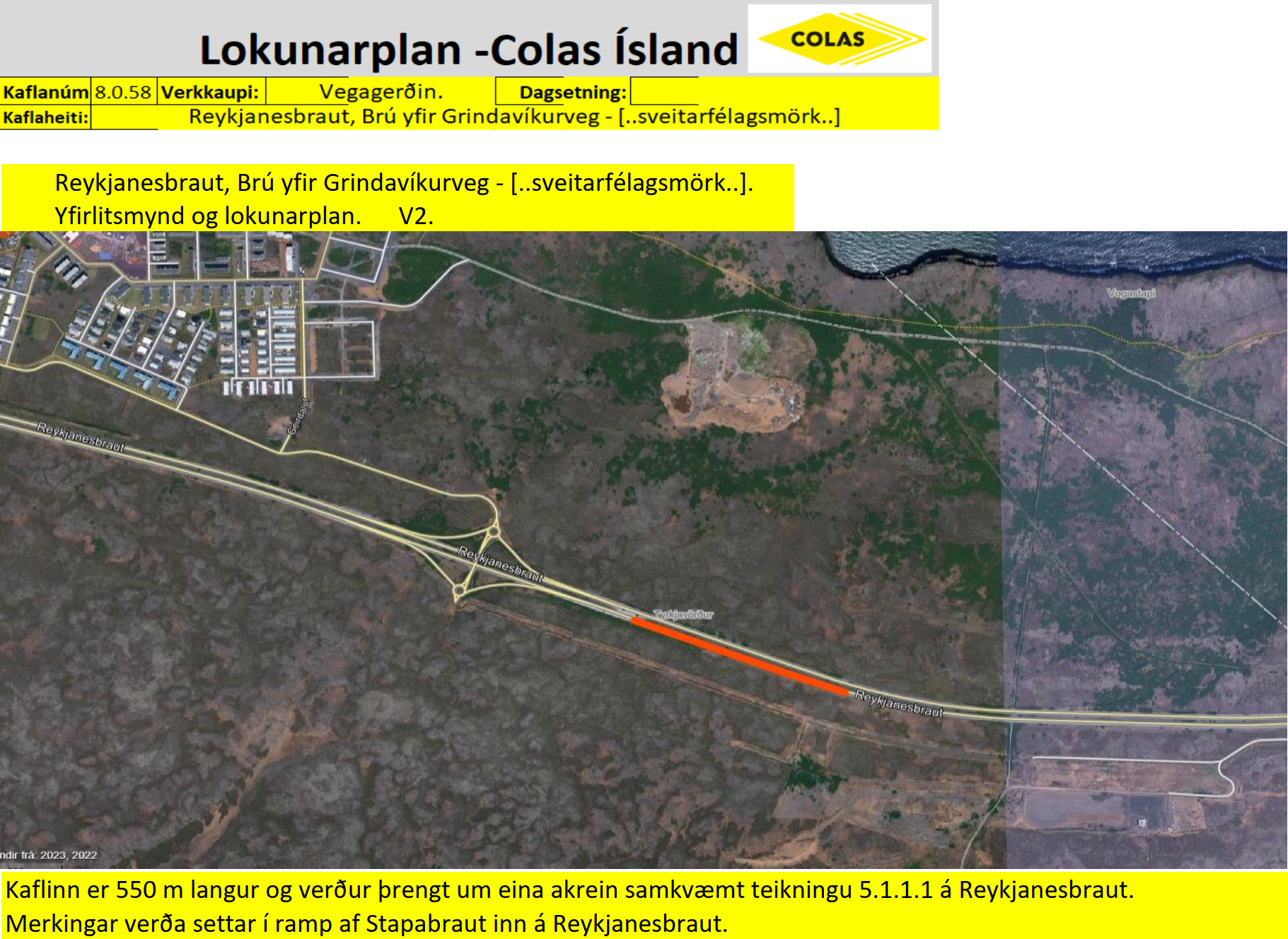 Miðvikudaginn 29.maí er stefnt á að fræsa og malbika tvo kafla á hægri akrein á Reykjanesbraut, á milli gatnamóta við Narðvíkurvegveg og Grindavíkurveg. Kaflarnir eru samtals um 1,3 km að lengd og hraði verður tekinn niður framhjá framkvæmdasvæðum. Viðeigandimerkingar verða settar upp skv. viðhengdu merkingaráætlunum.