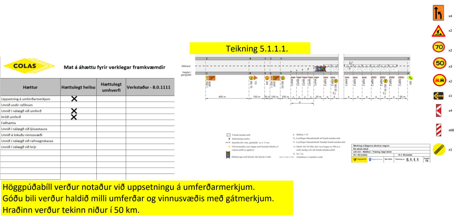 Vegfarendur eru beðnir um að virða merkingar og hraðatakmarkanir og sýna aðgát við vinnusvæðin. Vinnusvæðin eru þröng og menn og tæki eru við vinnu mjög nálægt akstursbrautum.