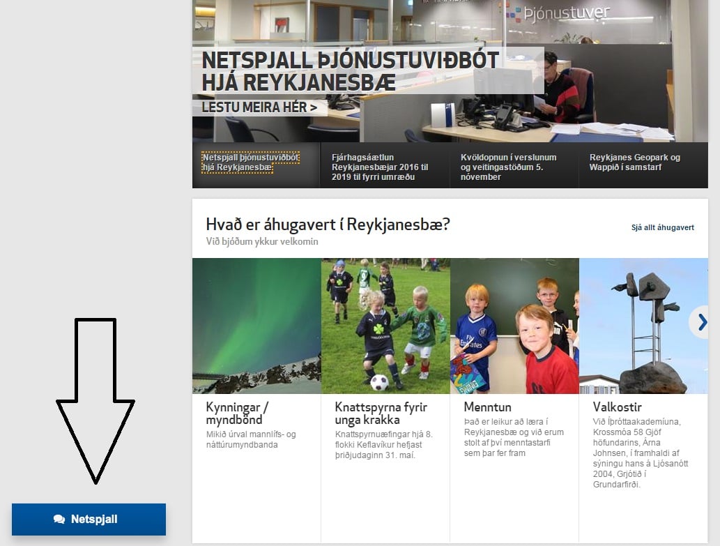 Þjónustuver Reykjanesbæjar býður nú upp á Netspjall til að auka þjónustu við viðskiptavini bæjarins. Í Netspjalli, sem sýnilegt er vinstra megin á heimasíðu þessa vefjar, er hægt að setja inn stuttar og einfaldar fyrirspurnir og er markmiðið að svara þeim fljótt og örugglega.