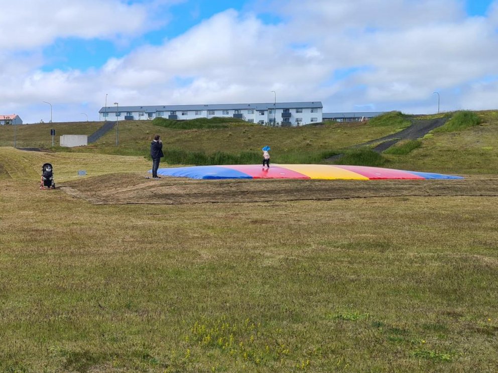 Reykjanesbær og Kadeco vilja óska íbúum til hamingju með nýja leikaðstöðu sem er liður í heilsueflandi sveitarfélagi og styður jafnt við íbúa sem og aðra gesti. Því er beint til allra sem mæta að ganga vel um og passa sig að fara ekki inn á belginn í skóm, hlaupahjólum eða öðru sem getur skemmt hann.