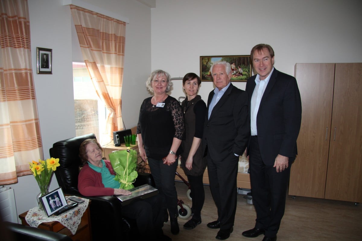 Á myndinni hér að ofan eru auk Margrétar, Hrönn Ljótsdóttir forstöðumaður, Þuríður Elíasdóttir deildarstjóri á Nesvöllum, Guðmundur Hallvarðsson stjórnarformaður Sjómannadagsráðs og Árni Sigfússon bæjarstjóri.