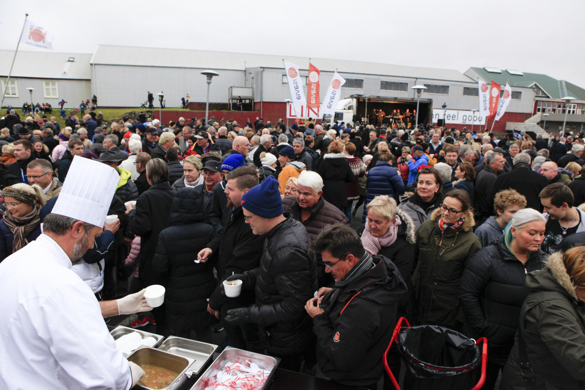 Mörg hundruð manns söfnuðust saman við Smábátahöfnina í Gróf í gær til þess að gæða sér á gómsætri kjötsúpu í boði Skólamatar og hlusta á tónlist. Bryggjuballið er alltaf meðal vinsælustu dagskrárliða á föstudegi Ljósanæturhátíðar í Reykjanesbæ og þá er gott að ylja sér á súpu og metta áður en tjúttað er.