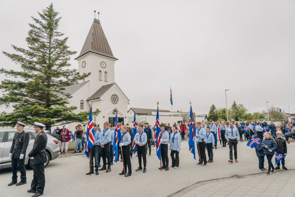 Dagskráin hófst með því að skátar frá Heiðabúum og lúðrasveit Tónlistarskóla Reykjanesbæjar gengu fylktu liði inn í skrúðgarðinn í Keflavík með hátíðarfánann, þann stærsta á Íslandi. Með lúðrasveitinni léku einnig sérstakir gestir úr U.S. Naval Forces Europe and Africa Band sem eru í heimsókn hér á landi á vegum bandaríska sendiráðsins og settu þeir skemmtilegan svip á gönguna.