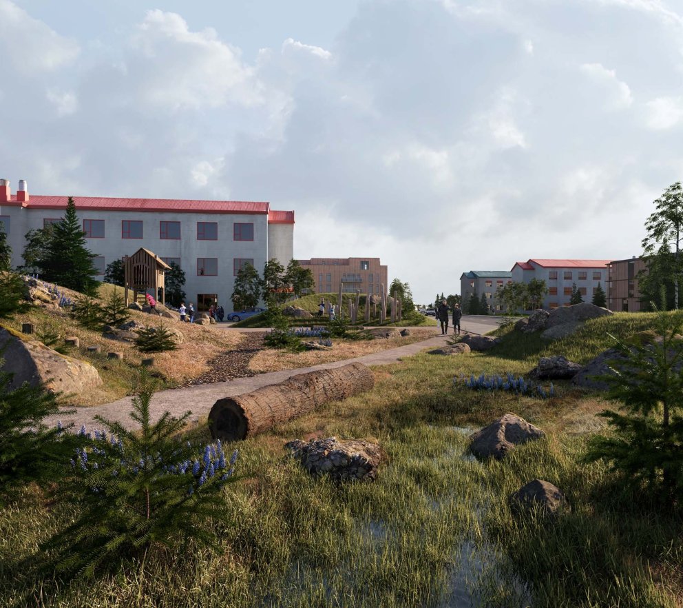 Deiliskipulag um svæðið verður gert á grunni nýs rammaskipulags fyrir Ásbrú þar sem gert er ráð fyrir lágreistri en fjölbreyttri byggð fjölbýlishúsa í anda þess byggðamynsturs sem fyrir er á svæðinu. Áhersla er m.a. á blágrænar ofanvatnslausnir og grænt og barnvænt umhverfi. Gert er ráð fyrir að deiliskipulag fyrir reitinn verði kynnt og auglýst næsta vetur og þess er vænst að uppbygging geti hafist fljótlega í kjölfarið.
