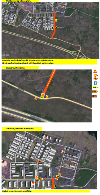 Vegfarendur eru beðnir um að sýna aðgát og virða lokanir, merkingar og leiðbeiningar á meðan framkvæmdum stendur. Gera má ráð fyrir umferðartöfum og eru íbúar beðnir um að forðast akstur um svæðin sé þess nokkur kostur á meðan unnið er.