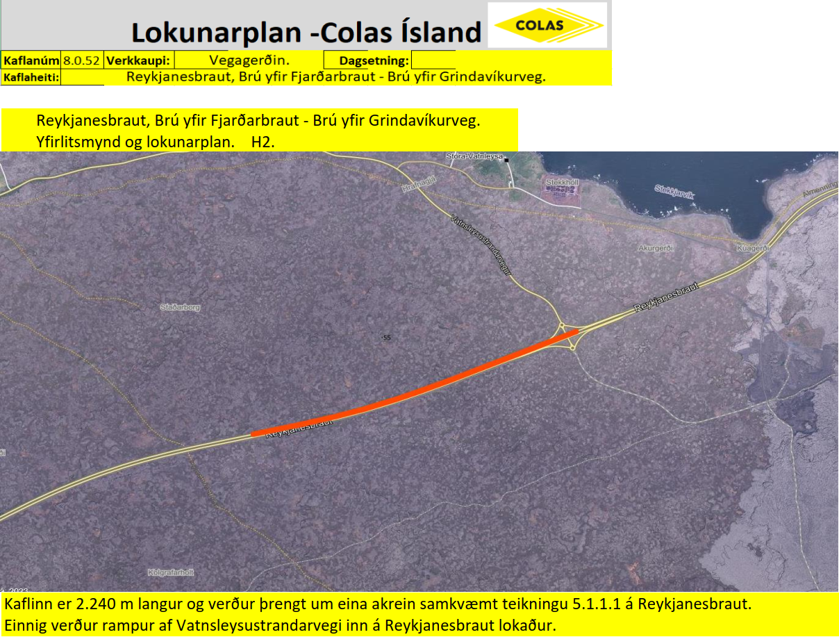 Mánudaginn 13.maí er stefnt á að fræsa og malbika hægri akrein á Reykjanesbraut, frá Vatnsleysustrandarvegi til vesturs. Kaflinn er um 2,2 km að lengd og hraði verður tekinn niður framhjá framkvæmdasvæði. Viðeigandi merkingar verða settar upp skv. viðhengdu lokunarplani.