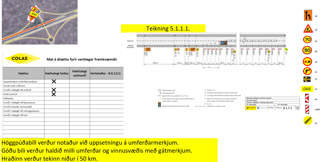 Vegfarendur eru beðnir um að virða merkingar og hraðatakmarkanir og sýna aðgát við vinnusvæðin. Vinnusvæðin eru þröng og menn og tæki eru við vinnu mjög nálægt akstursbrautum.