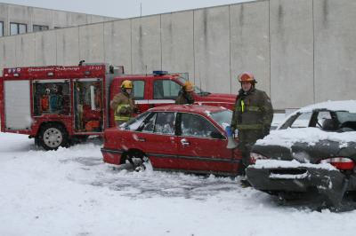 Sviðsett var umferðarslys á planinu við 88 Húsið og fengu nemendur að sjá hvernig lögregla og sjúkraflutningamenn athafna sig þegar slys verður og klippa þarf bíl í sundur.