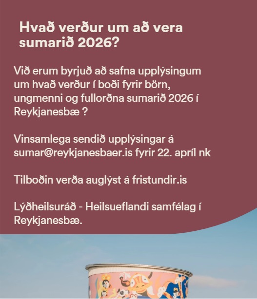 Hægt er að senda inn auglýsingar um íþrótta- og tómstundatilboð á netfangið sumar@reykjanesbaer.is fyrir 22. apríl n.k.
