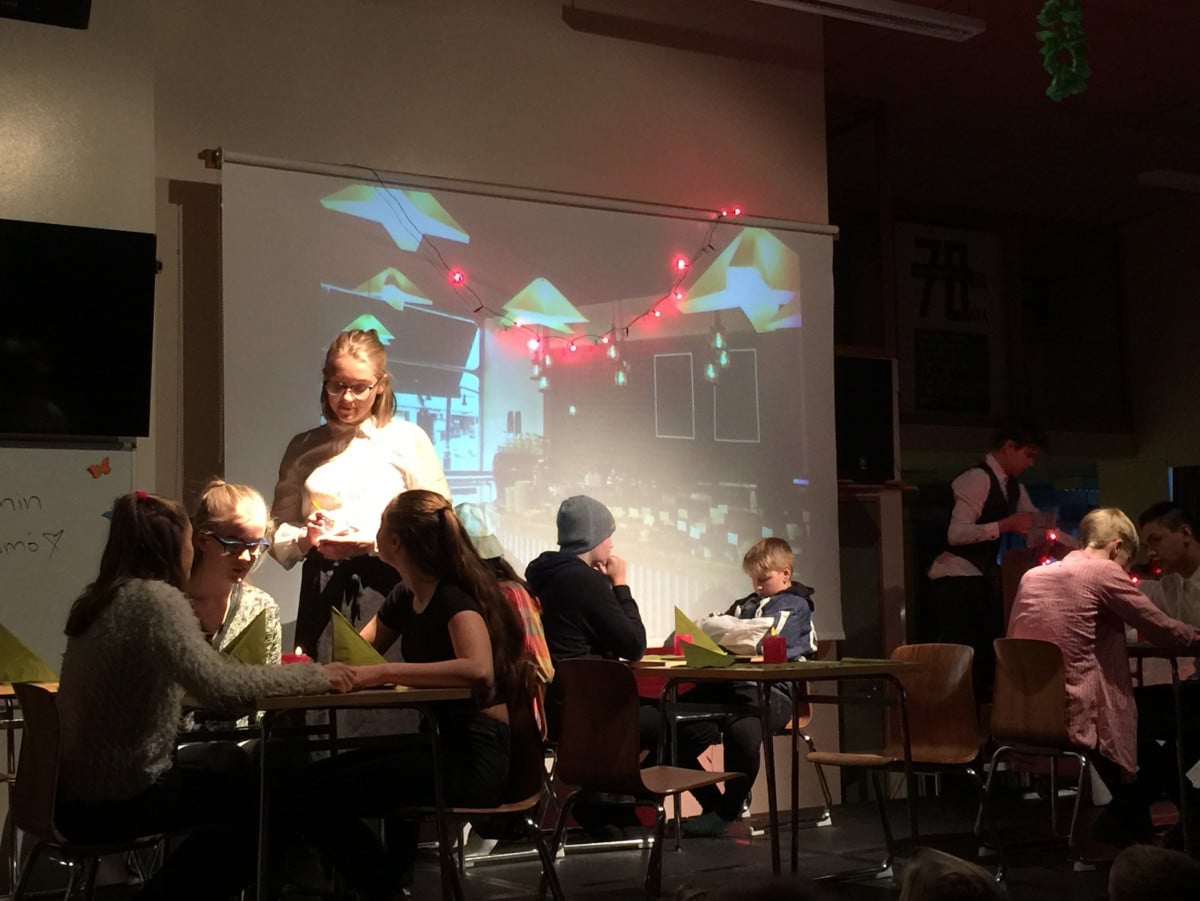 Meðfylgjandi mynd var tekin í Njarðvíkurskóla í morgun þar sem nemendur sungu og sýndu m.a. frumsamið leikrit. Þau fengu einnig gesti frá Gimli, en elsti hópur leikskólans kom á hátíðina og söng.